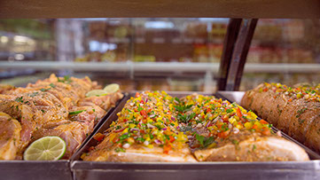 Em um ambiente climatizado, amplo e bem iluminado, você encontrará uma variedade incrível de produtos, tudo preparado seguindo as melhores práticas de manipulação e armazenamento de alimentos. Você contará também com uma equipe de profissionais muito bem treinados e prontos para dar aquelas dicas que farão a diferença na sua mesa, tanto no cotidiano quanto naquela data especial. Que tal uma carne deliciosa, bem temperada e recheada, dentro de uma embalagem especial que vai direto para o seu forno ou churrasqueira? Parece sonho? Pois isso e muito mais espera por você aqui!